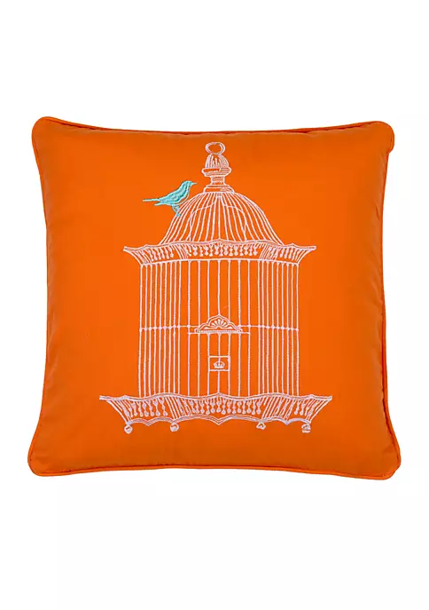Add a pop of color to any room in your home with the Levtex Home Adelais Birdcage Pillow. Featuring a bright orange ground with an embroidered white birdcage and blue bird, this pillow provides a playful touch to any room. This pillow comes feather filled and compliments the Levtex Home Adelais Quilt Set.
