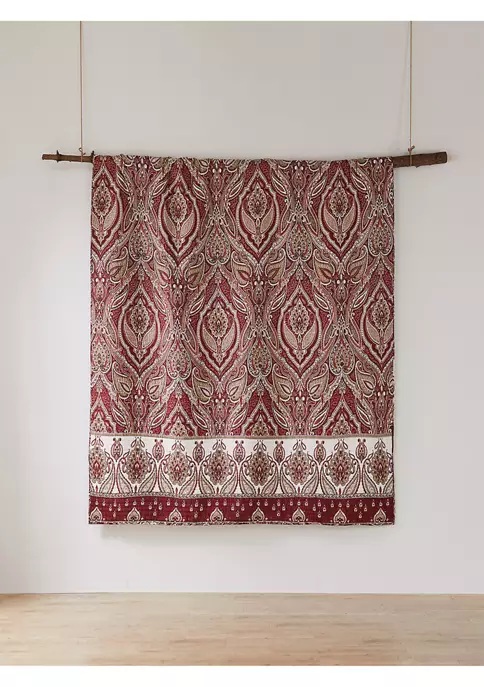 The Astrid Reversible Quilt by Villa Lugano for Levtex Home is inspired by antique European wallcoverings and tapestries. Offered in classic red and taupe, this design will immediately transform your bedroom. This reversible quilt features a rich collection of medallions and paisleys offset with a distinctive bottom border on the front, reversing to a small red and taupe medallion on white on the back. The quilt is filled with a cotton-rich filler and is machine washable. Enjoy this for years to come!