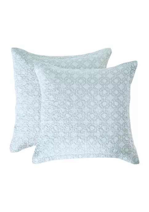 The Bay Islands euro shams are the perfect complement to the Levtex Home Bay Islands Collection. This is the perfect accessory to add a layer of dimension and truly complete your bedroom. Sized at 26 inches by 26 inches, the euro shams feature a repeating geometric gate pattern in blue on cream. Made from 100% cotton, the Bay Islands euro shams are easy to care for. They come as a set of 2 without a filler.