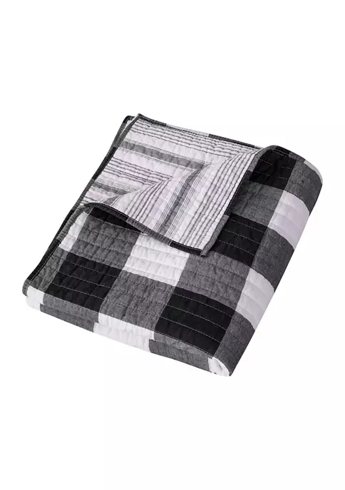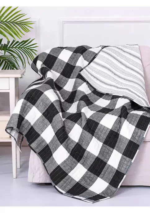 The Levtex Camden Quilted Throw in buffalo check in black and cream is reversible and 100% cotton.