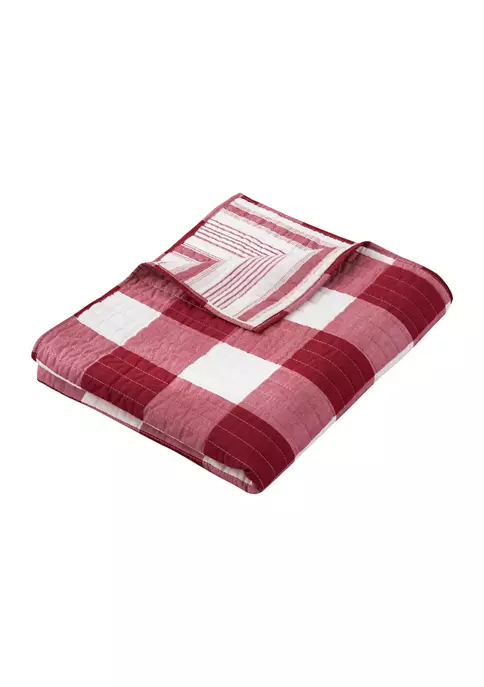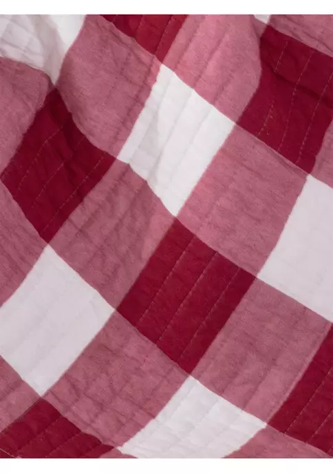 The Levtex Camden Quilted Throw in buffalo check in red and cream is reversible and 100% cotton.
