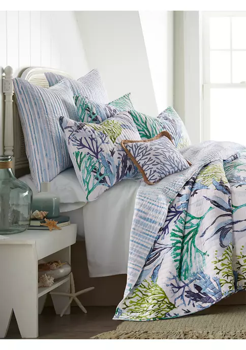 The Crete Euro Shams are the perfect complement to the Levtex Home Crete collection. This is the perfect accessory to add a layer of dimension and truly complete your bedroom. Sized at 50 inches by 60 inches, the euro shams feature a wonderful watercolor selection of coral and sea plants. Made from one, the Crete Euro Shams are easy to care for. They come as a set of 2 without a filler.