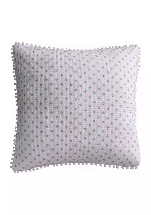Oversized and luxurious, the lovely Ditsy Spa Euro Pillow Sham by Levtex Home is accented with a delicate teal and white medallion print with a stylish pom trim. This set of two reversible Euro shams 26 in x 26 in is made with 100% cotton and the perfect complement to bedding sets from the Levtex Home Ditsy Spa Collection (sold separately). Machine washable and imported.