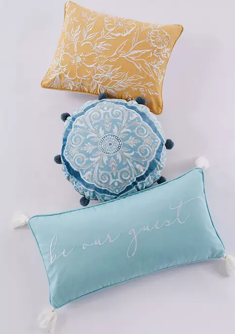 The Floral decorative pillow matches perfectly with the Levtex Home Alita bedding collection. This pillow is sized at 14 x 18in. and features a beautiful floral pattern intricately embroidered on a gold textured ground. The color palette makes this a versatile accessory for your bed, couch or favorite chair. The pillows comes pre-filled with a soft luxurious feather inner.