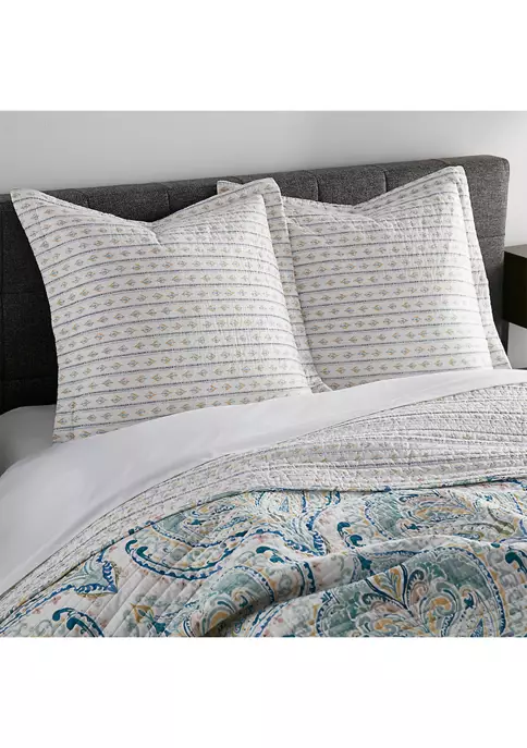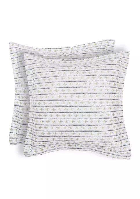 The Alita euro shams are the perfect complement to the Levtex Home Alita collection. This is the perfect accessory to add a layer of dimension and truly complete your bedroom. Sized at 26 x 26 in., the euro shams feature a simple blue and yellow global stripe design on an off-white ground. Made from 100% cotton, the Alita euro shams are easy to care for. They come as a set of 2 without a filler.