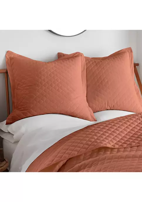 The Austin Quilted Euro Sham Set by Levtex Home is inspired by classic European styling. Offered in clay, this design will immediately transform your bedroom. These shams feature a solid clay cotton and linen quilting. The Euro Sham Set 2 (26x26in.) is microfiber, quilted with a cotton rich filler and is machine washable. Pillow inner not included. Enjoy this for years to come!
