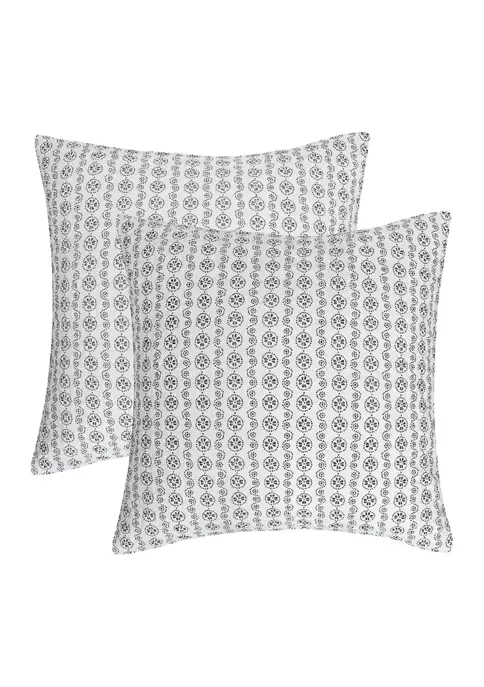 The Basel euro shams are the perfect complement to the Levtex Home Basel collection. This is the perfect accessory to add a layer of dimension and truly complete your bedroom. Sized at 26 inches by 26 inches, the euro shams feature a bold geometric medallion pattern in black and white. Made from 100% cotton, the Basel euro shams are easy to care for. They come as a set of 2 without a filler.