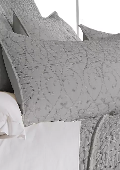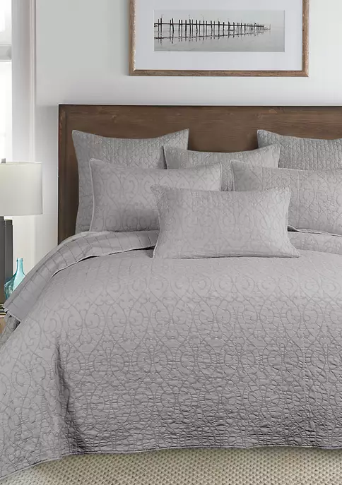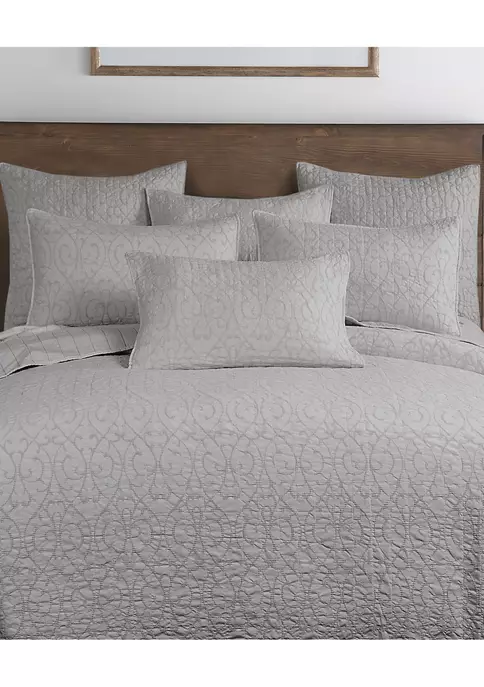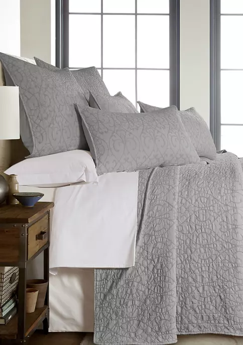 The Beckett Queen quilted bedspread set by Levtex Home is inspired by traditional jacquards. Offered in this perfect shade of Cream, this design will immediately transform your bedroom. Made with the softest lightweight pre-washed microfiber, this bedspread is made from a microfiber damask scroll on the one side, reversing to a solid microfiber in the same color on the other. The Queen Bedspread Set is machine washable and includes the bedspread (102 x 118 in.) and one standard pillow sham (26 x 20 in.) Enjoy this for years to come!