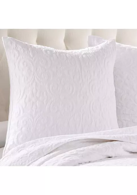 The Sherbourne Euro Sham by Levtex Home is inspired by classic matelasse fabrics. Offered in white, this design will immediately transform your bedroom. Made with the softest lightweight cotton, this sham features a white cotton quilted in an intricate medallion pattern. The Euro Sham (26 x 26in.) is machine washable and comes as a single sham with no inner. Enjoy this for years to come!