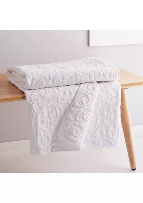 The Sherbourne Quilted Throw by Levtex Home is inspired by classic matelasse fabrics. Offered in white, this design will immediately transform your bedroom. Made with the softest lightweight cotton, this reversible throw features a white cotton quilted in an intricate medallion pattern. The Quilted Throw is perfectly sized at 50 x 60in. and is machine washable. Enjoy this for years to come!