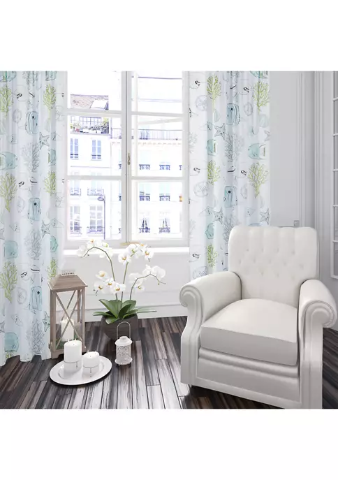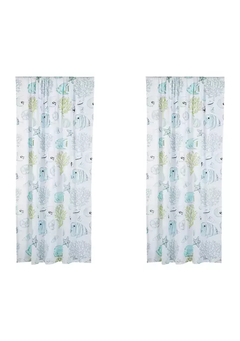 The Biscayne curtain two-panel set complements the Biscayne bedding collection but can be used to accessorize any window in your home. These window panels feature a beautiful print featuring fish, coral and seashells and will complement so many design choices. One of the most popular collections, Biscayne is inspired by a tropical island vacation. It is the perfect accessory for any bedroom, family room, living room or den. Made from 100% Cotton, the Biscayne drape panel is easy to care for. Two 84 inch long drape panels included in purchase (55 inches wide).