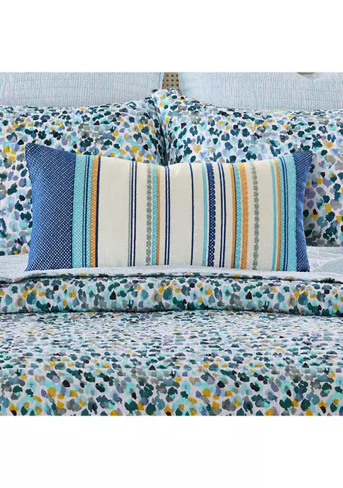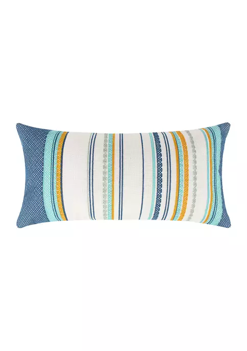 The Embroidered Stripes on cream canvas decorative pillow matches perfectly with the Levtex Home Calico Blue bedding collection. This pillow is sized at 14 x 32in. and features beautifuly embroidered details on cream canvas ground The color palette makes this a versatile accessory for your bed, couch or favorite chair. The pillow comes pre-filled with a soft. luxurious feather inner.