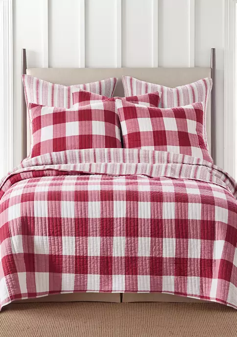 Levtex Red Camden Quilt Set is a versatile, farmhouse buffalo check bedding set consisting of a Twin size quilt (68 x 86 in.) and one matching pillow sham (26 x 20 in.). Used by itself, as a layering piece or as a bedspread, this bedding set is extremely versatile.
