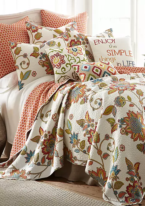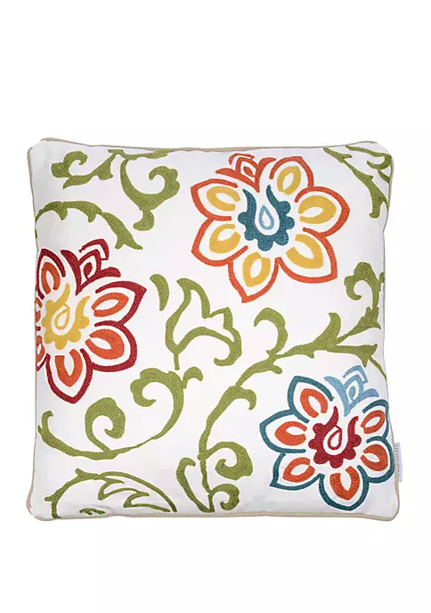 The Levtex Home Clementine Floral Pillow combines the look of traditional Jacobean vines with a subtle geometric twist in multi-colored threads. This embroidered 18-inch x 18-inch machine washable pillow shell comes with a feather insert and matches back to the Levtex Home Clementine collection.