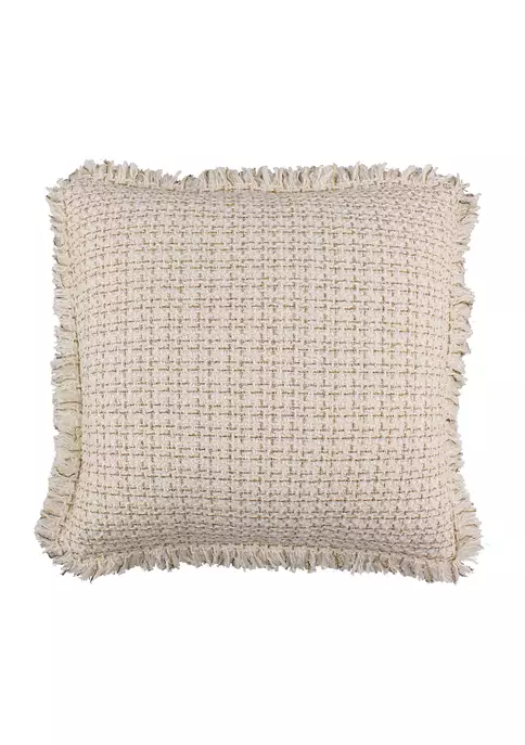 The Textured Fringe decorative pillow matches perfectly with the Levtex Home Cosima bedding collection. This pillow is sized at 18 x 18in. and features an upholstery weight woven textured fabric in shades of beige, taupe and cream finsihed with a matching fringed edge. The color palette makes this a versatile accessory for your bed, couch or favorite chair. The pillows comes pre-filled with a soft luxurious feather inner.