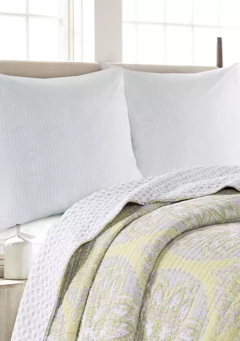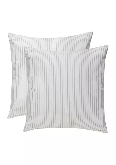 The Enzo euro shams are the perfect complement to the Levtex Home Enzo collection. This is the perfect accessory to add a layer of dimension and truly complete your bedroom. Sized at 26 inches by 26 inches, the euro shams feature a thin gray stripe on white ground in yellow, gray, and white. Made from 100% cotton, the Enzo euro shams are easy to care for. They come as a set of 2 without a filler.