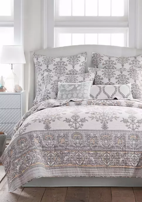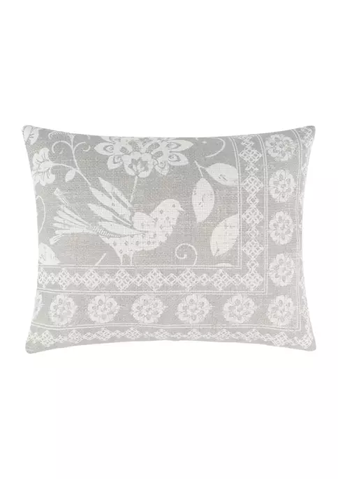 The Printed Bird decorative pillow matches perfectly with the Levtex Home Filigree bedding collection. This pillow is sized at 14x18in. and features a white screen printed bird and flowers on a textured grey ground. The grey and white color palette makes this a versatile accessory for your bed, couch or favorite chair. The pillow comes pre-filled with a soft, luxurious feather inner.