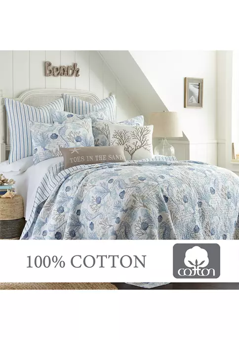 Featuring a watercolor coastal print pattern, this quilt set is machine washable and includes a quilt (88 in x 92 in) and two standard pillow shams (26 in x 20 in)