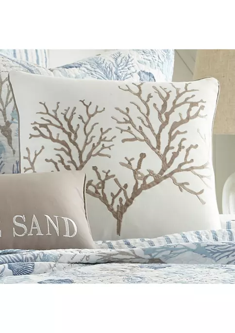 The Embroidered Coral Decorative Pillow (18-inch by 18-inch) by Levtex Home features a gorgeously detailed, embroidered coral on a white canvas ground. The pillow comes filled with a removable feather filler, perfect for your bed, sofa, or favorite chair. Enjoy this for years to come!