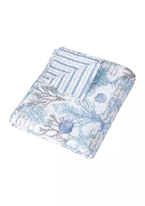 The Galapagos Reversible Quilted Throw by Levtex Home is inspired by a snorkeling adventure on a beautiful coral reef. Featuring a watercolor coastal print pattern, this machine-washable 50-inch by 60-inch throw will be enjoyed for years to come!