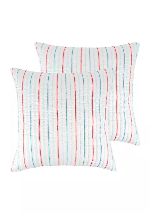 Designed to finish the look of the Holly Jolly bedding collection, these Euro Shams are useful as an extra layer to lean back on while you read or watch television. Each euro sham is sized at (26x26in.) and features a classic striped pattern in Red and Light Blue on a white fuzzy ground They come as a set of 2, pre-filled with a polyester inner. Extremely versatile, they can also be used alone to give any bed a little spot of sophistication, or a bit of holiday cheer.