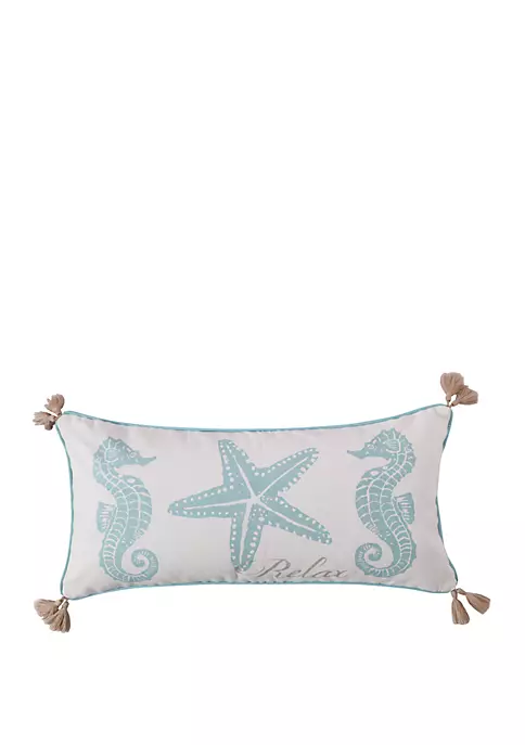 Take a break and unwind with lovely teal seahorses on the Icaria Seahorse Pillow from Levtex Home.