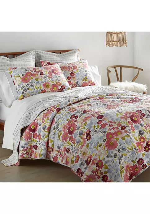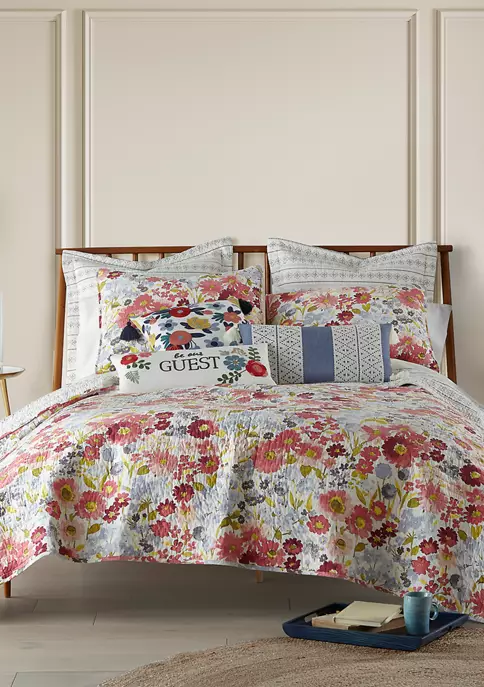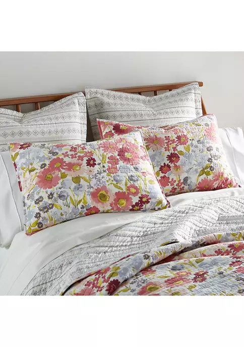 The Josephina Reversible Full/Queen Quilt Set by Levtex Home is inspired by the gorgeous landscapes of English country painters. This watercolor floral design will immediately transform your bedroom. Made with the softest lightweight cotton, this reversible quilt features a watercolor flowers in pastel shades on a white ground, reversing to a lilac stripe medallion on the other. The Full/Queen Quilt Set is machine washable and includes the quilt (88x92in.) and two standard pillow shams (26x20in.) Enjoy this for years to come!