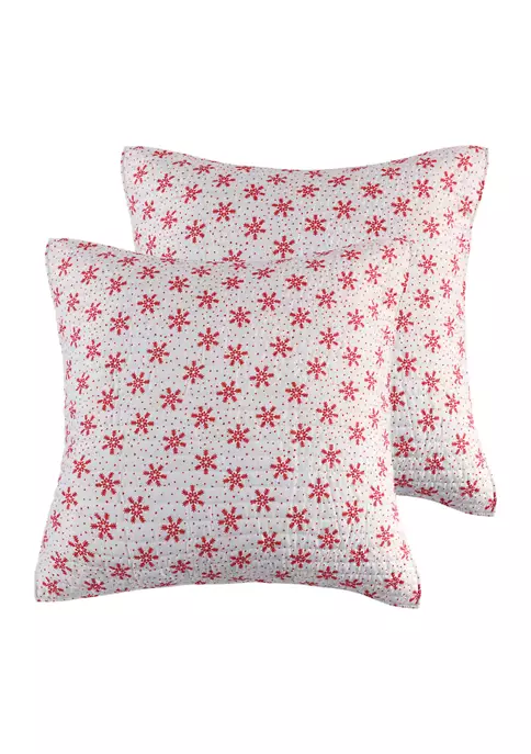 The Let It Snow euro shams will brighten any bed and perfectly complement the Levtex Home Let It Snow bedding collection. Add a little touch of the holiday spirit to any room in your home. These euro shams come as a set of 2 and are sized at 26 inches by 26 inches. They are a bright Christmas red. They come as a set of 2 and are unfilled. Bring the holidays home!