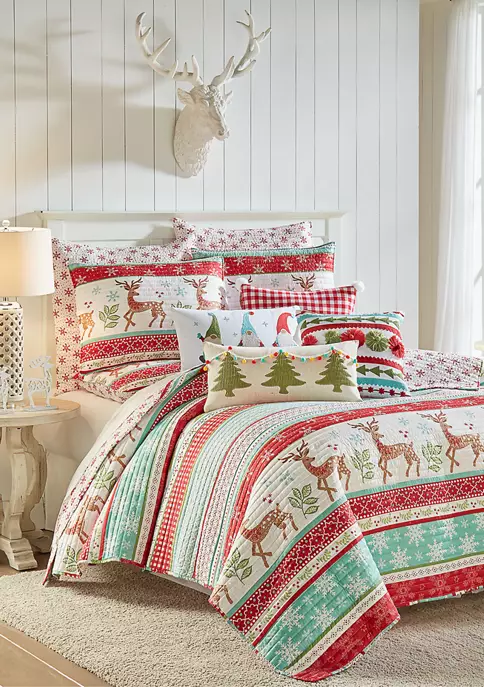 The Gnome decorative pillow matches perfectly with the Levtex Home Let It Snow bedding collection or can be used to bring the holiday spirit into any room in your home. This pillow is sized at 12-inch by 24-inch and features three richly embroidered dancing festive gnomes on canvas, surrounded by silver gray embroidered stars. A versatile accessory for your bed, couch, or favorite chair. The pillows comes pre-filled with a soft luxurious feather inner. Bring the holidays home!