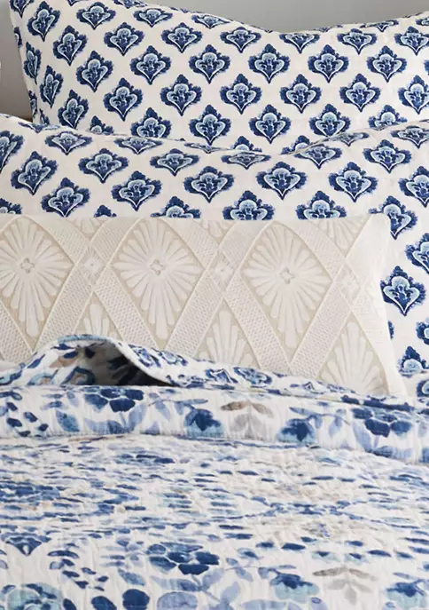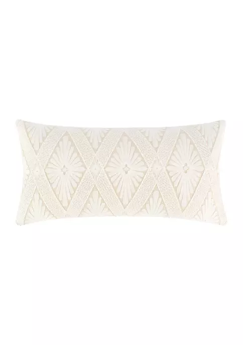The Diamond Embroidered decorative pillow matches perfectly with the Levtex Home Lorrance bedding collection. This pillow is sized at 12x24in. and features embroidered white diamond pattern on a cream ground. The cream and white color palette makes this a versatile accessory for your bed, couch or favorite chair. The pillow comes pre-filled with a soft, luxurious feather inner.