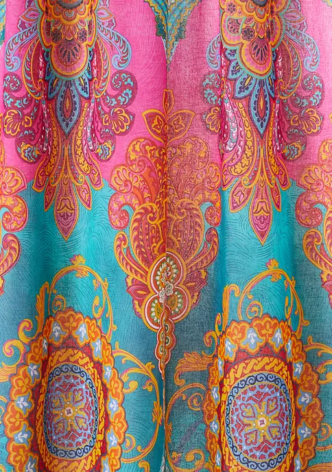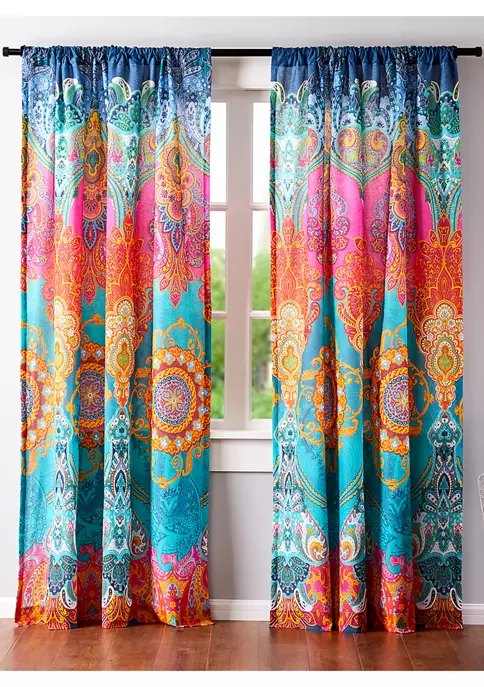 The Mackenzie drape panel complements the Levtex Home Mackenzie collection. This is the perfect accessory for any room. Sized at 55-inch by 84-inch, this comes as a single drape and features a swirl of damasks and medallions in playful colors pattern. Made from 100% cotton, the Mackenzie decorative curtains are easy to care for. It comes with a rod pocket ready for installation.