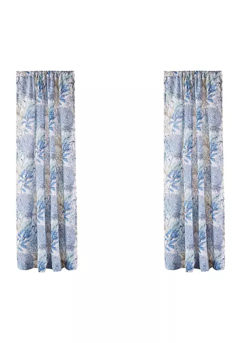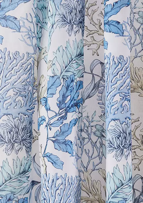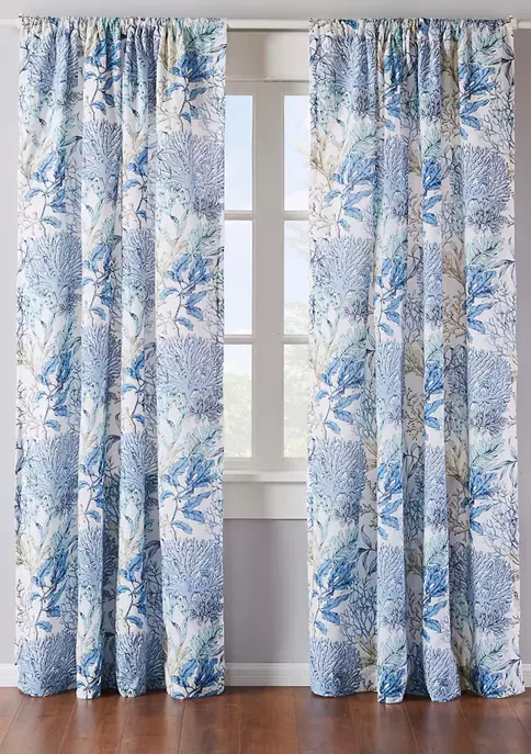 The Mahina drape panel complements the Levtex Home Mahina collection. This is the perfect accessory for any room in your house. Sized at 55x84in., this comes as a pair and features a detailed toss of aquatic plants in shades of blue, taupe, and white. Made from 100% cotton, the Mahina decorative curtains are easy to care for. These come with with a rod pocket ready for installation.