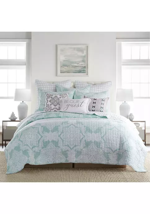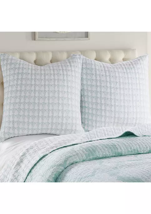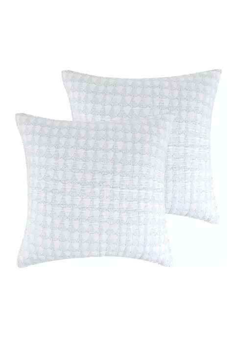 The McClain Spa euro shams are the perfect complement to the Levtex Home McClain Spa collection. This is the perfect accessory to add a layer of dimension and truly complete your bedroom. Sized at 26 inches by 26 inches, the euro shams feature a subtle geometric medallion pattern in spa and white. Made from 100% cotton, the McClain Spa euro shams are easy to care for. They come as a set of 2 without a filler.