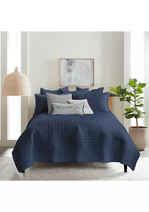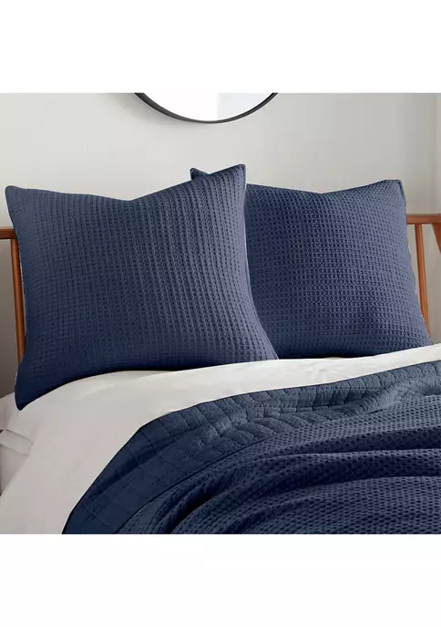 The Mills Waffle Euro Shams by Levtex Home are soft and luxurious – timeless classics. The euro shams come in this beautiful shade of Navy, as well as many other colors. Whether you use them with the rest of the Mills Waffle collection or layer them in with your own bedding or another of our Levtex Home collections, you will love the versatility of the Mills Waffle euros. These euros will immediately elevate any bed into a luxurious haven. Made with the softest lightweight cotton waffle, the euro shams reverse to a coordinating cotton. The Mills Waffle euro sham covers are machine washable. The set includes 2 euro sham covers and no inners. Enjoy them for years to come!