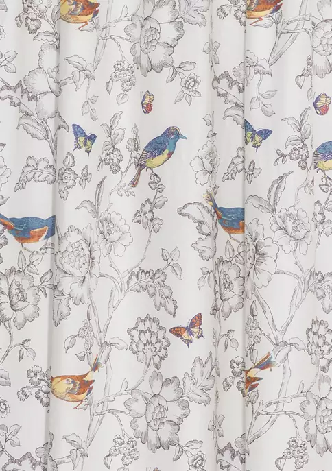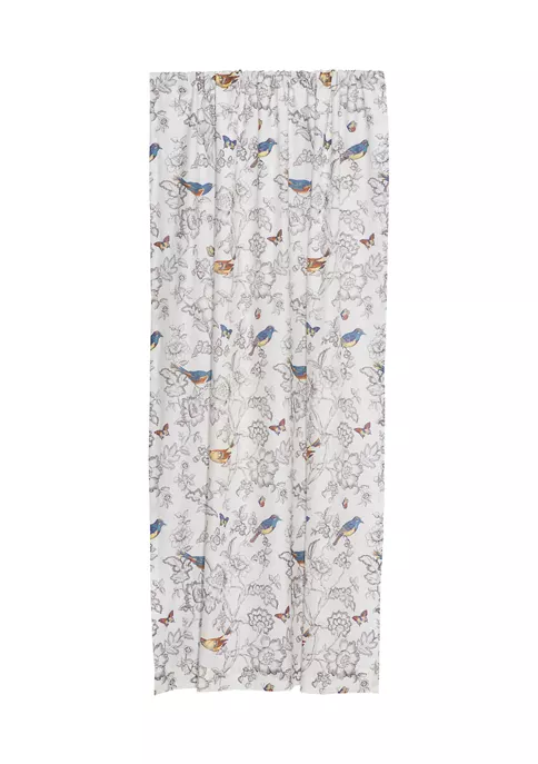 The Mockingbird curtain panel complements the Mockingbird bedding collection but can be used to accessorize any window in your home. This window panel features a gorgeous floral toile in charcoal and white, accented with birds in orange, rust, red, teal, and blue, and will complement so many design choices. One of the most popular collections, Mockingbird is inspired by traditional french toiles. It is the perfect accessory for any bedroom, family room, living room, or den. Made from 100% cotton, the Mockingbird drape panel is easy to care for. One 84-inch long drape panel is included in the purchase (55 inches wide).