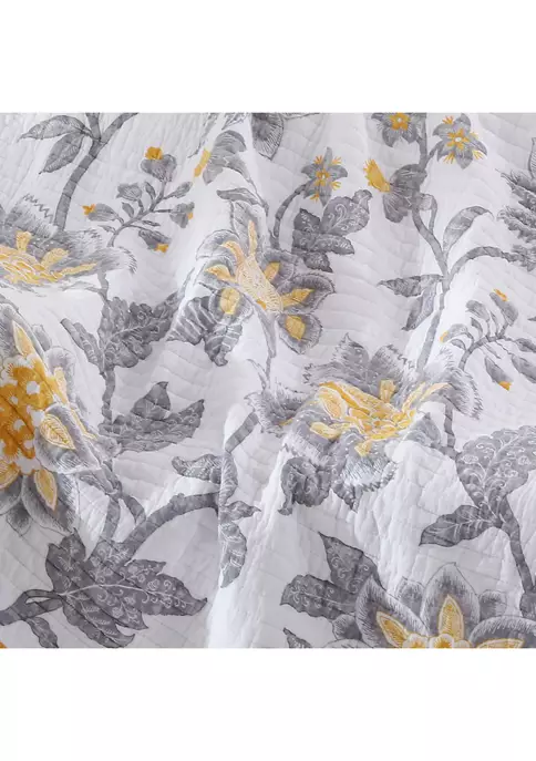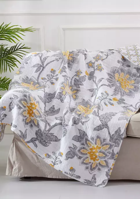 The Reverie Reversible Quilted Throw by Levtex Home is inspired by a garden after a spring shower. This intricate paisley design will immediately transform your bedroom. Made with the softest lightweight cotton, this reversible throw features a gray, yellow, and white floral, reversing to a yellow, gray, and white geometric pattern on the other. The Quilted Throw is perfectly sized at 50 inches by 60 inches and is machine washable. Enjoy this for years to come!