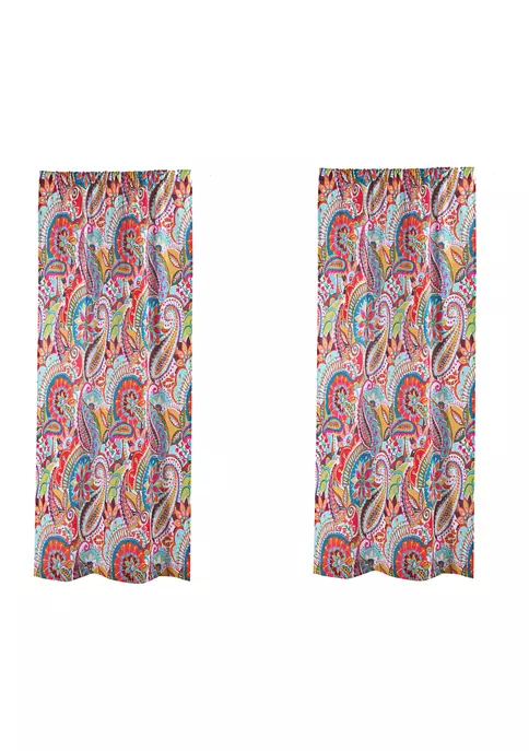 Rhapsody Drape Panel set of 2 is the perfect accessory for any window in your home. These drape panels particularly complement the Levtex Home Rhapsody bedding collection. Sized at 55 inches by 84 inches, these drape panels feature a bright multicolor paisley pattern. The sophisticated color palette makes this a versatile accessory for any room in your home. These panels are lined with a light polyester liner and come as a set of 2.