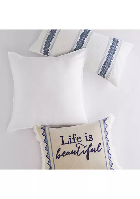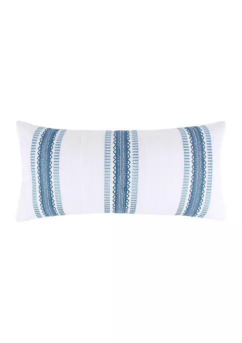 The Embroidered Stripes decorative pillow matches perfectly with the Levtex Home Riella Garden bedding collection. This pillow is sized at 12 x 24in. and features gorgeously detailed embroidered stripes on a white canvas ground. The color palette makes this a versatile accessory for your bed, couch or favorite chair. The pillow comes pre-filled with a soft. luxurious feather inner.