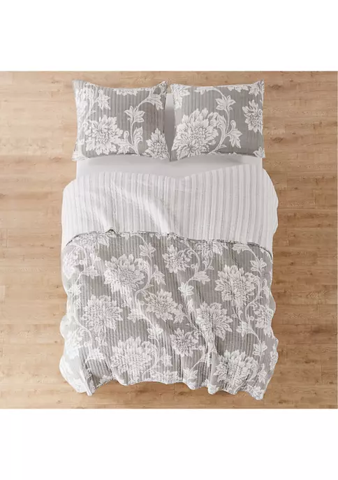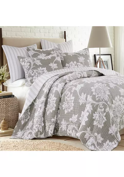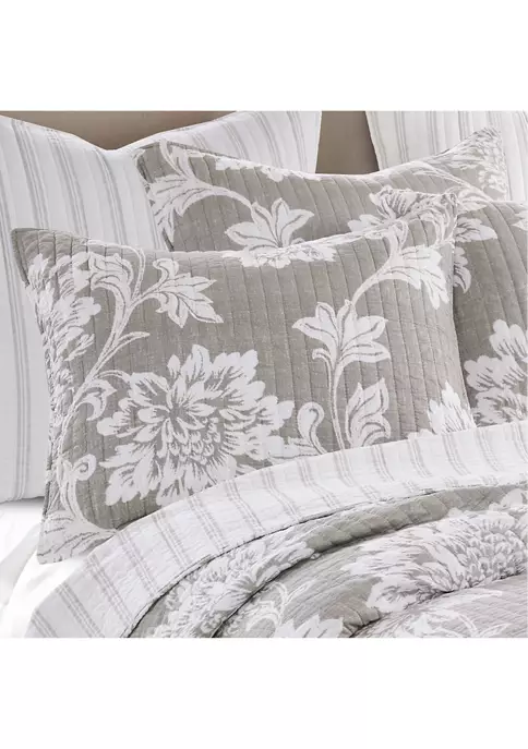 The Sanira Reversible Twin/Twin XL Quilt Set by Levtex Home is inspired by vintage French wall coverings. This floral design will immediately transform your bedroom. Made with the softest lightweight cotton, this reversible quilt features a beautifully rendered large scale Jacobean floral, reversing to a classic French taupe on cream stripe on the other. The Twin/Twin XL Quilt Set is machine washable and includes the quilt (68x86in.) and one standard pillow sham (26x20in.) Enjoy this for years to come!