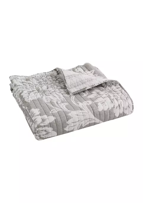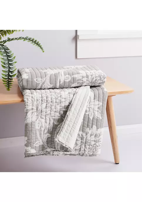 The Sanira Reversible Quilted Throw by Levtex Home is inspired by vintage French wall coverings. This floral design will immediately transform your bedroom. Made with the softest lightweight cotton, this reversible throw features a beautifully rendered large scale Jacobean floral, reversing to a classic French taupe on cream stripe on the other. The Quilted Throw is perfectly sized at 50x60in. and is machine washable. Enjoy this for years to come!