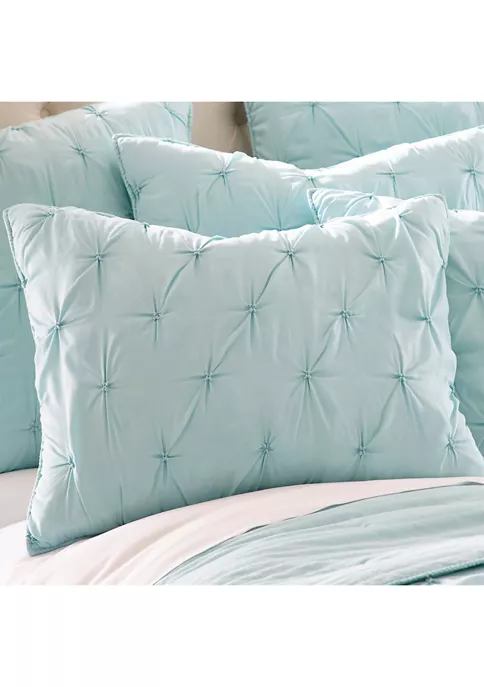 The Spa Pintuck King Quilt Set by Levtex Home is inspired by the colors of springtime. Offered in spa, this design will immediately transform your bedroom. The quilt features an elegant pintuck pattern in the light blue fabric. The King Quilt (106x92in.) and two Shams (20x36in.) have a brushed polyester front and back, filled with a polyester filler and are machine washable. Enjoy this for years to come!