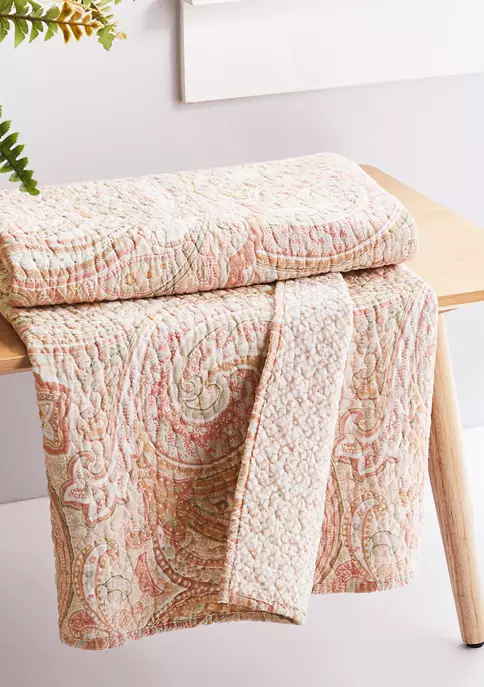 The Spruce Coral Quilted Throw by Levtex Home is inspired by traditional paisley patterns. This throw features an intricate paisley pattern in soft shades of coral and tan and a charming reverse pattern of the coral lattice. The Quilted Throw is made of the softest, lightweight cotton and is perfectly sized at 50 inches by 60 inches and is machine washable. Enjoy this for years to come!