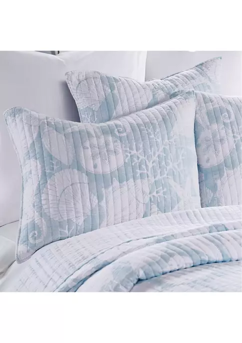 The Stillwater Reversible Twin/Twin XL Quilt Set by Levtex Home is inspired by a long walk on a sun-drenched shore. This intricate shell and coral design will immediately transform your bedroom. Made with the softest lightweight cotton, this reversible quilt features a shells in coral in of white relief on a pale blue ground, reversing to a blue and white stripe on the other. The Twin/Twin XL Quilt Set is machine washable and includes the quilt (68x86in.) and one standard pillow sham (26x20in.) Enjoy this for years to come!