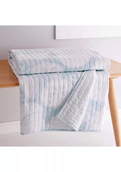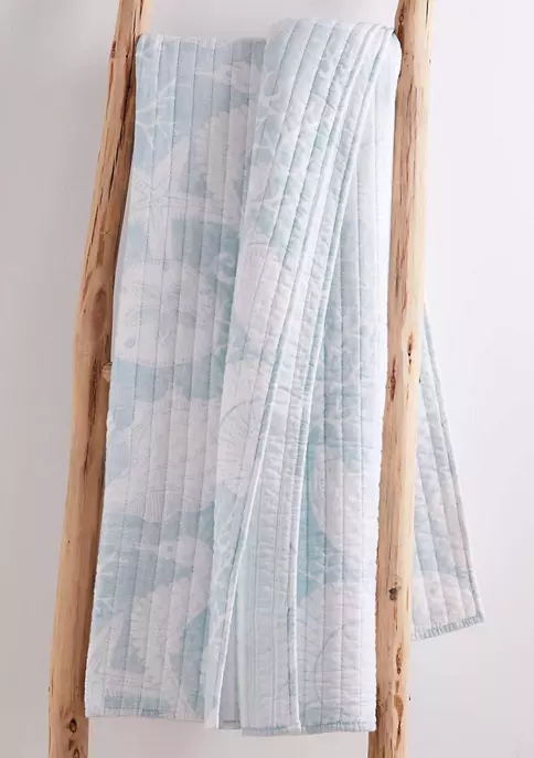 The Stillwater Reversible Quilted Throw by Levtex Home is inspired by a long walk on a sun-drenched shore. This intricate shell and coral design will immediately transform your bedroom. Made with the softest lightweight cotton, this reversible throw features shells and seahorses on a pale blue ground, reversing to color-matching stripes on the other. The Quilted Throw is perfectly sized at 50x60in. and is machine washable. Enjoy this for years to come!