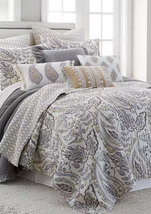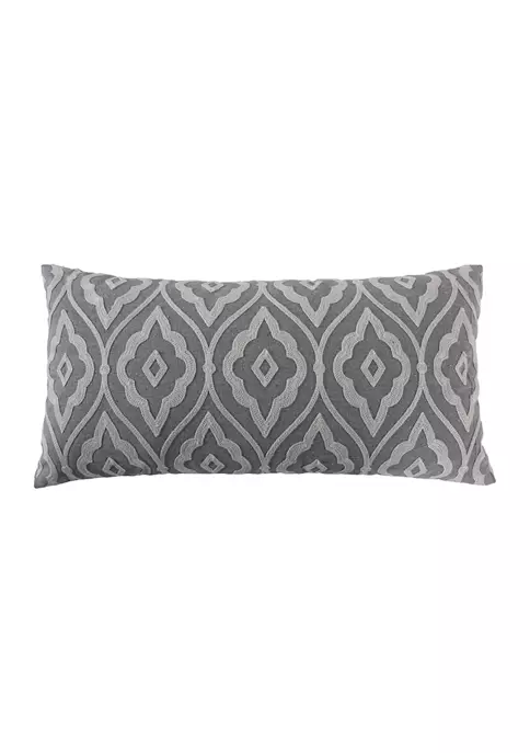 The Embroidered Trellis Decorative Pillow matches perfectly with the Levtex Home Tamsin Grey bedding collection. This pillow is sized at 12 inches by 24 inches and features an intricate trellis pattern. The gray and off-white color palette makes this a versatile accessory for your bed, couch, or favorite chair. The pillow comes pre-filled with a soft luxurious feather inner.