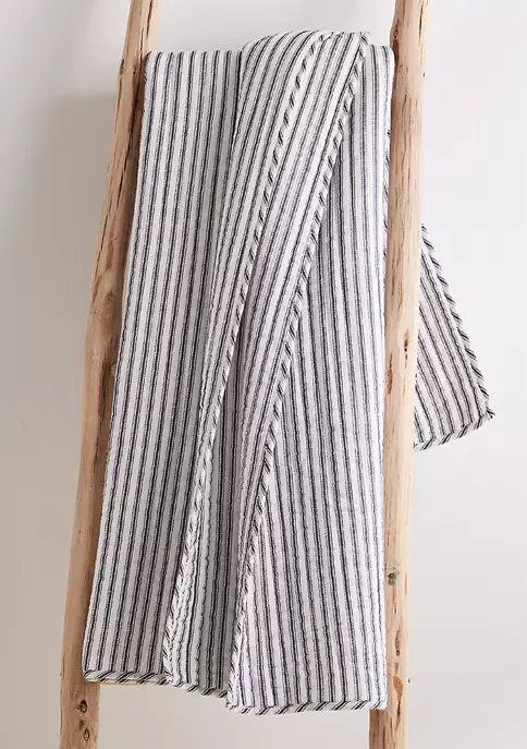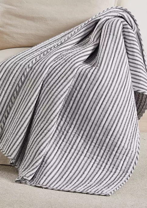 The Tobago Stripe Charcoal Reversible Quilted Throw by Levtex Home is inspired by nautical stripes. This classic stripe design will immediately transform your bedroom. Made with the softest lightweight cotton, this reversible throw features dark grey pin stripes on white, reversing to a classic charcoal and white pin stripe on the other. The Quilted Throw is perfectly sized at 50x60in. and is machine washable. Enjoy this for years to come!