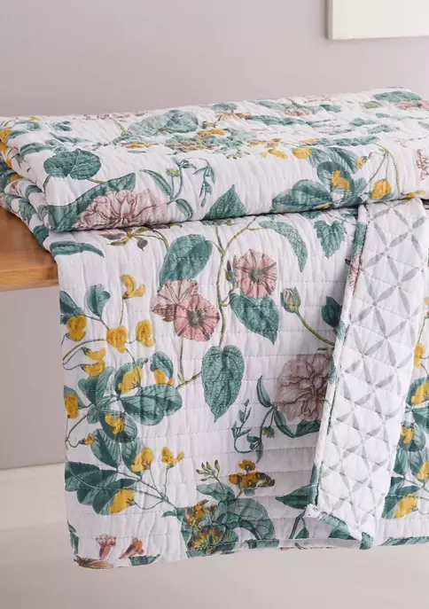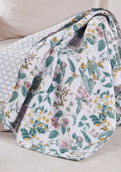 The Verity Reversible Throw by Levtex Home is inspired by beautiful floral gardens. Offered in pink, green, ochre and white, this design will immediately transform any room in your home. This throw features a rich collection of classic floral design on the front, reversing to a diamond green pattern on white on the back. The Throw (50x60in.) has a cotton front and cotton back, filled with a cotton-rich filler, and is machine washable. Enjoy this for years to come!