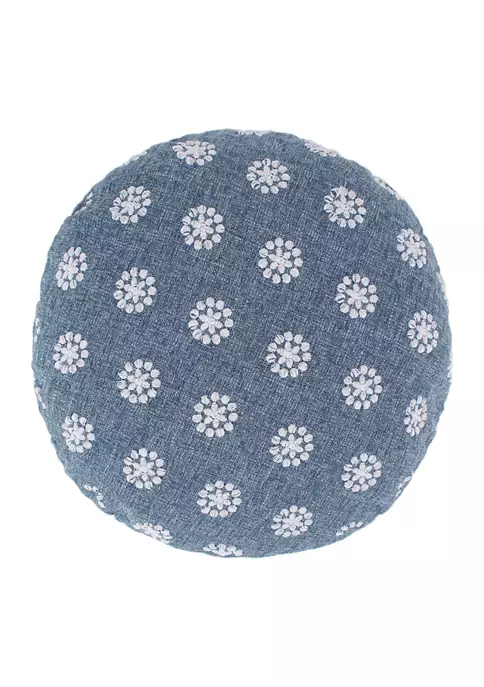 The Floral decorative pillow matches perfectly with the Levtex Home Wexford bedding collection. This pillow is sized at 16in. round and features an array of delicately embroidered flowers on a blue ground. The blue and white color palette makes this a versatile accessory for your bed, couch or favorite chair. The pillow comes pre-filled with a soft, luxurious feather inner.