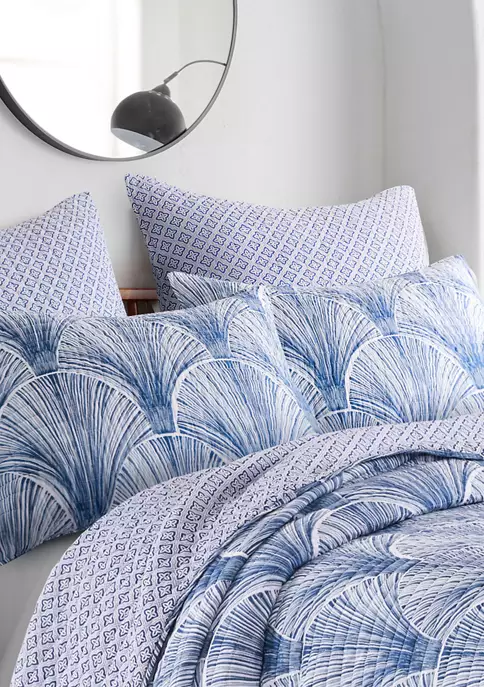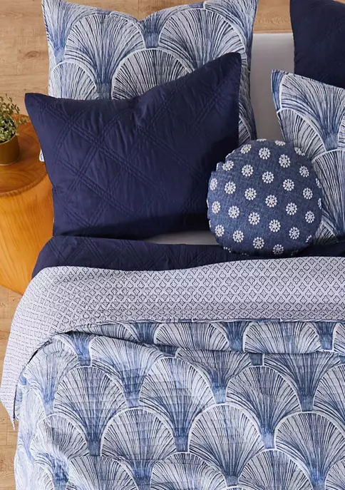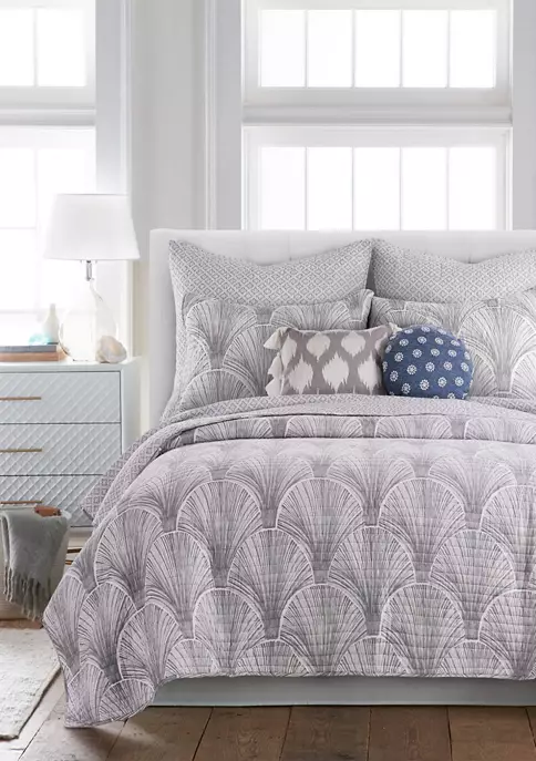 The Wexford Grey Reversible Twin Quilt Set by Levtex Home is inspired by a collection of bamboo fans. Offered in classic grey and white, this design will immediately transform your bedroom. This reversible quilt features a beautiful arrangement of grey fanning out over a white ground on the front, reversing to a small grey and white medallion on white on the back. The Twin Quilt (68x86in.) and Sham (20x26in.) have a cotton front and cotton back, filled with a cotton-rich filler, and are machine washable. Enjoy this for years to come!