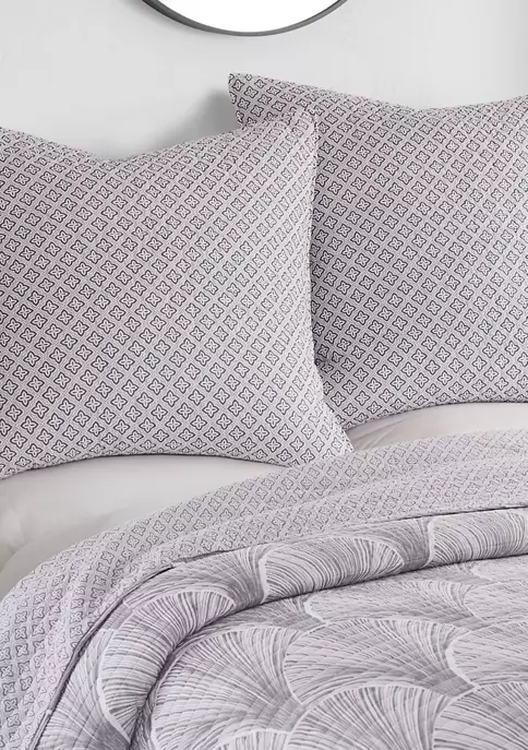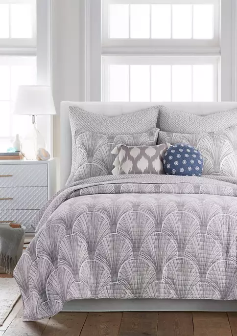 The Wexford Grey Quilted Euro Sham by Levtex Home is inspired by a collection of bamboo fans. Offered in grey and white, this design will immediately transform your bedroom. These shams feature a grey and white leaves. The Euro Sham (26x26in.) is microfiber, quilted with a cotton rich filler and is machine washable. Pillow inner not included. Enjoy this for years to come!